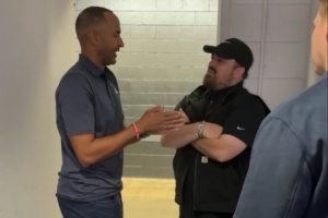 各为其主情谊不变!杨瀚森赛前跟好兄弟马卢阿奇合影并拥抱致意