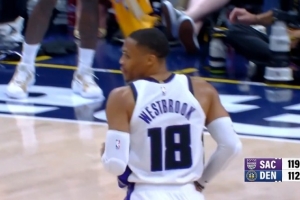 手起刀落!威少最后时刻压时间单打 负角度高难度金鸡独立命中!